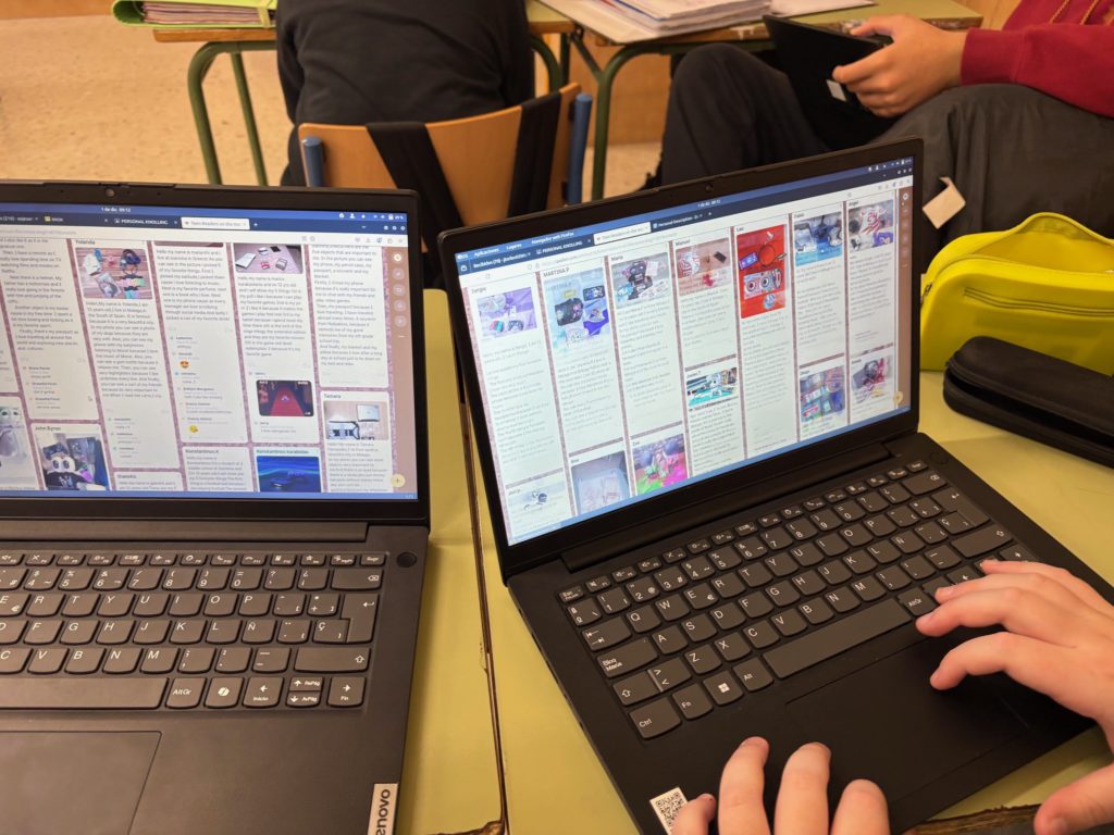 Para empezar a conocernos, hemos creado un muro digital donde cada participante ha colgado su “Knolling personal”, es decir, una foto con objetos personales que le representan y que definen sus aficiones y personalidad, junto a una descripción en inglés explicando por qué los ha seleccionado. Posteriormente, hemos leído los knollings del alumnado búlgaro y griego y les hemos dejado comentarios. ¡Parece que tenemos muchas cosas en común!
