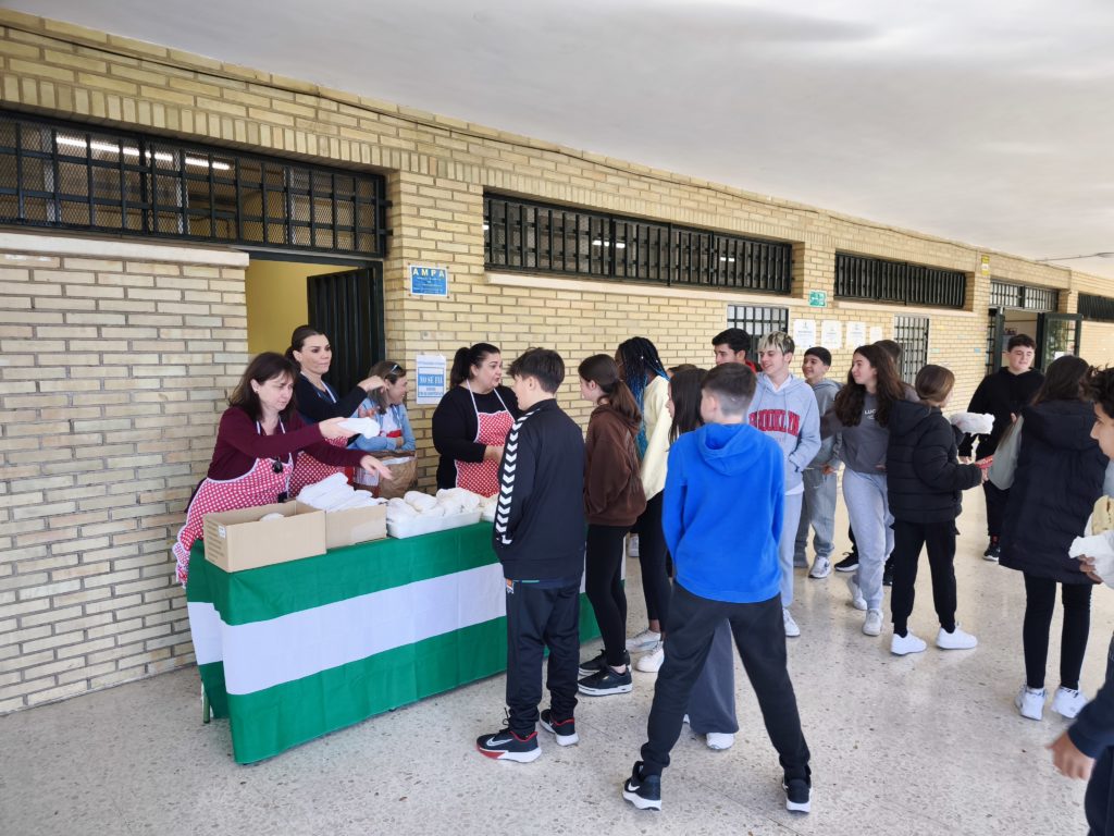 El alumnado de todos los cursos así como toda la comunidad educativa ha disfrutado hoy 19 de febrero de un desayuno andaluz, consistente en pan con aceite y jamón con motivo del Día de Andalucía que se celebra el próximo martes 28. ¡Feliz día y buenas vacaciones a todos y todas!