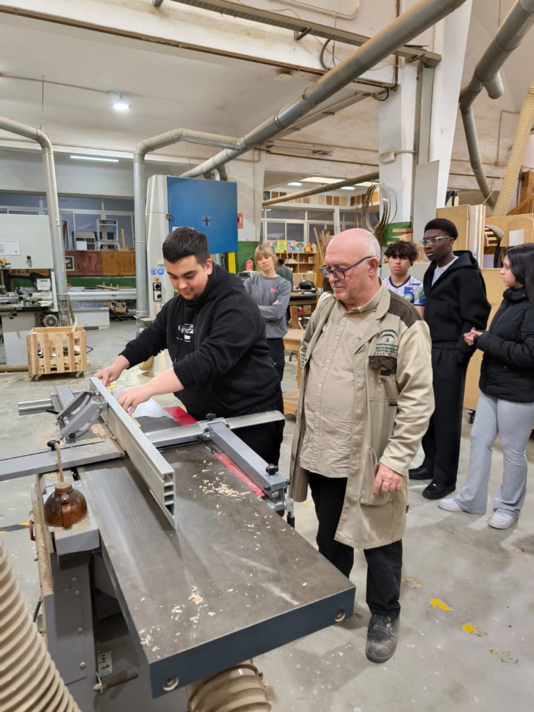 La segunda parte ha consistido en realizar un recorrido por los talleres de los módulos profesionales que se imparten en este centro, entre los que se encuentran la especialidad de carpintería, electromecánica de vehículos, actividades comerciales o impresión digital, entre otras.