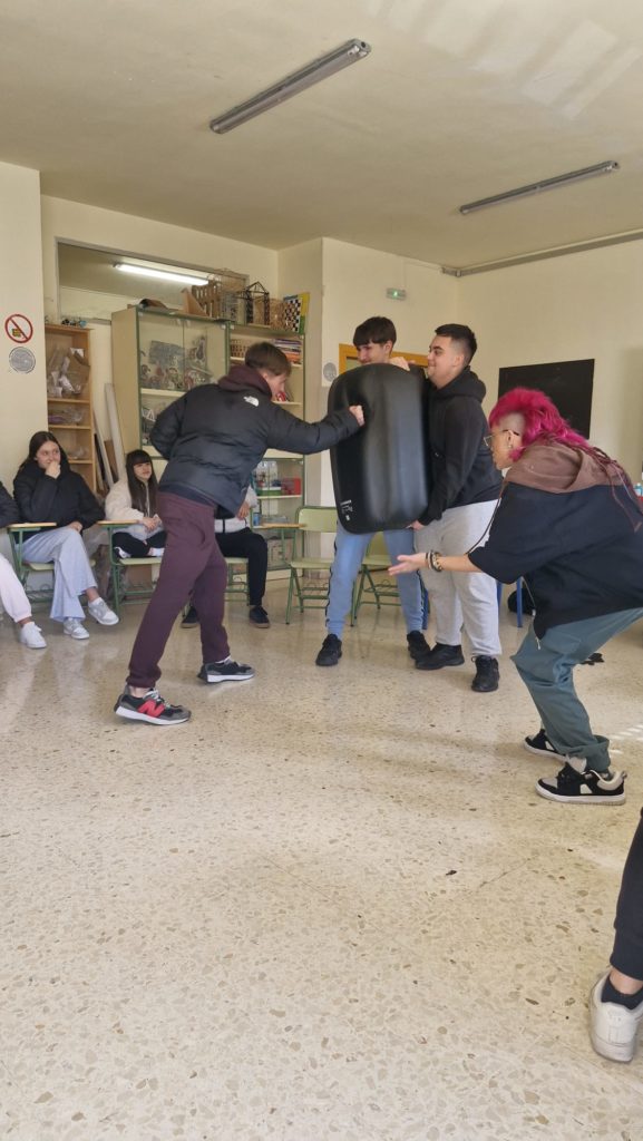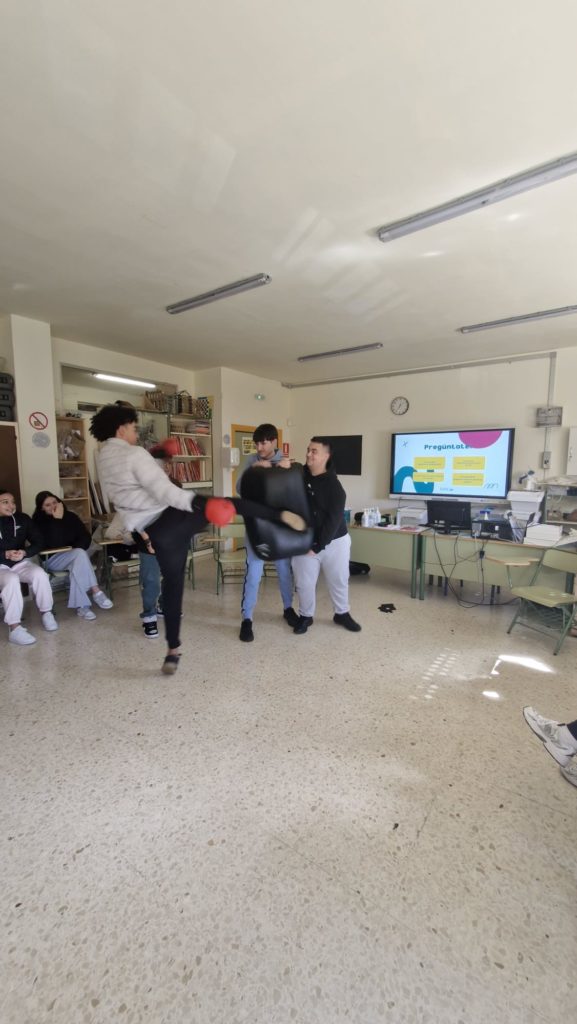 Sara, educadora social, les ha ayudado a reflexionar sobre las emociones básicas y sobre la función de cada una de ellas. A continuación, les ha explicado diferentes técnicas de gestión de la ira, para finalizar canalizando esta emoción golpeando un saco de boxeo.
