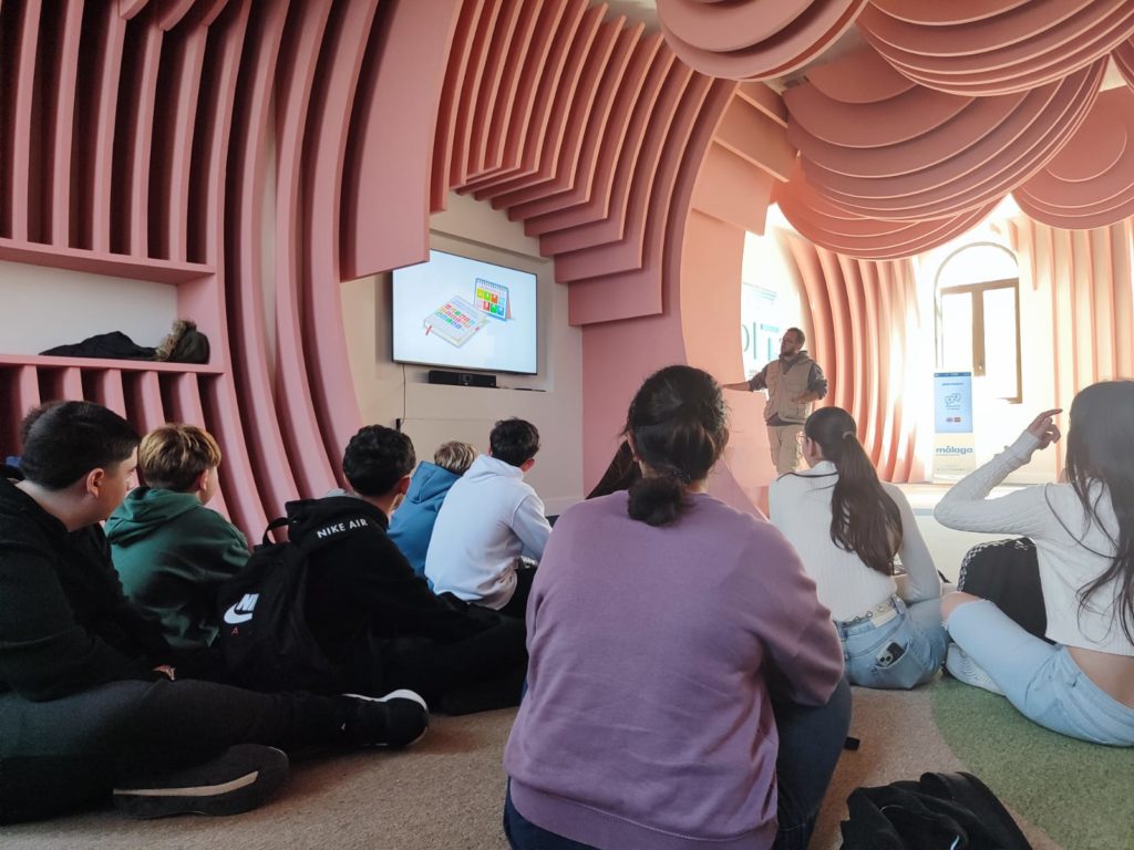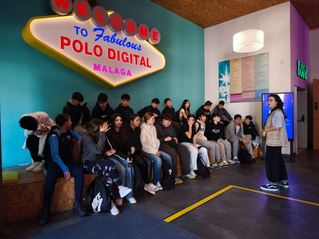 Este 12 de febrero, el alumnado de 3º de la ESO ha realizado una visita al Polo de Contenidos Digitales situado en el edificio de Tabacalera. La visita se ha dividido en dos partes. En una de ellas, el alumnado ha recibido información sobre tecnologías innovadoras e inteligentes, haciendo hincapié en los proyectos relacionados con la ciudad de Málaga. A través de juegos y de actividades interactivas han trabajado los Objetivos de Desarrollo Sostenible y más concretamente el ODS 11, «Las ciudades y comunidades sostenibles».